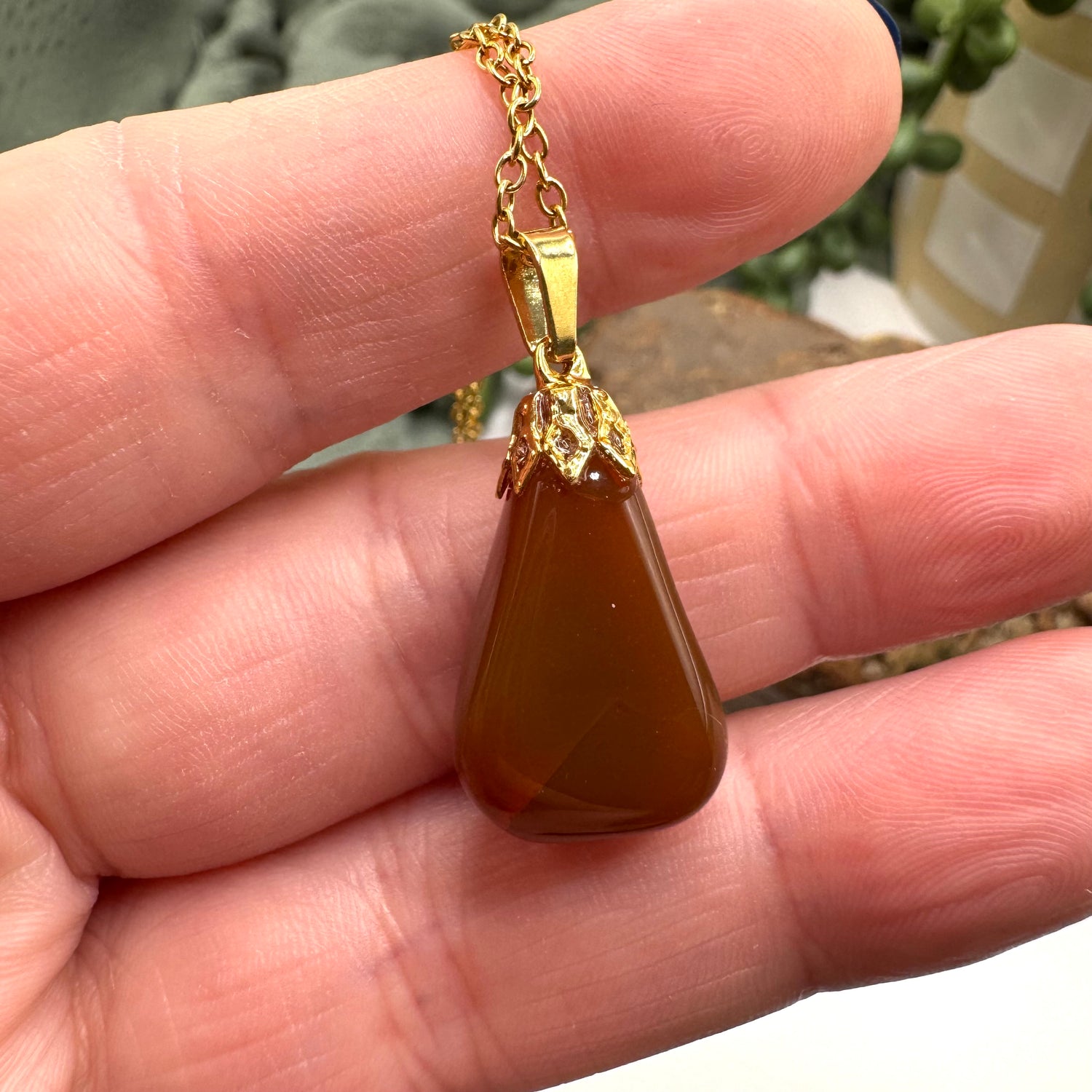 Carry a piece of the earth with you with this chocolate opal necklace. The pendant is hung on a gold-finishes stainless steel chain. The length can be adjusted from 18 to 20 inches. Stainless steel is hypoallergenic, highly durable, and it won't tarnish, making it a wonderful choice for everyday wear.