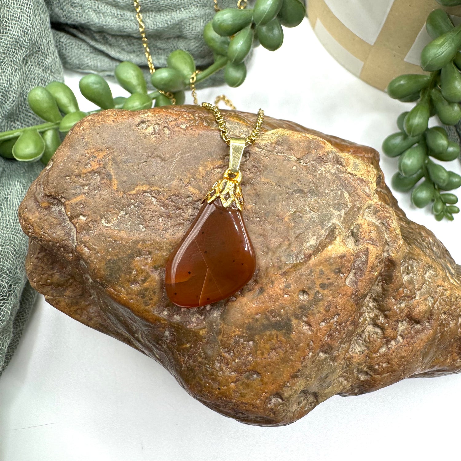 All of my necklaces are unique, one-of-a-kind, and handmade out of stones that I tumble and polish over a month long process. Check out my TikTok or YouTube @moonriserocks to see this stone’s journey from rough to perfectly polished!