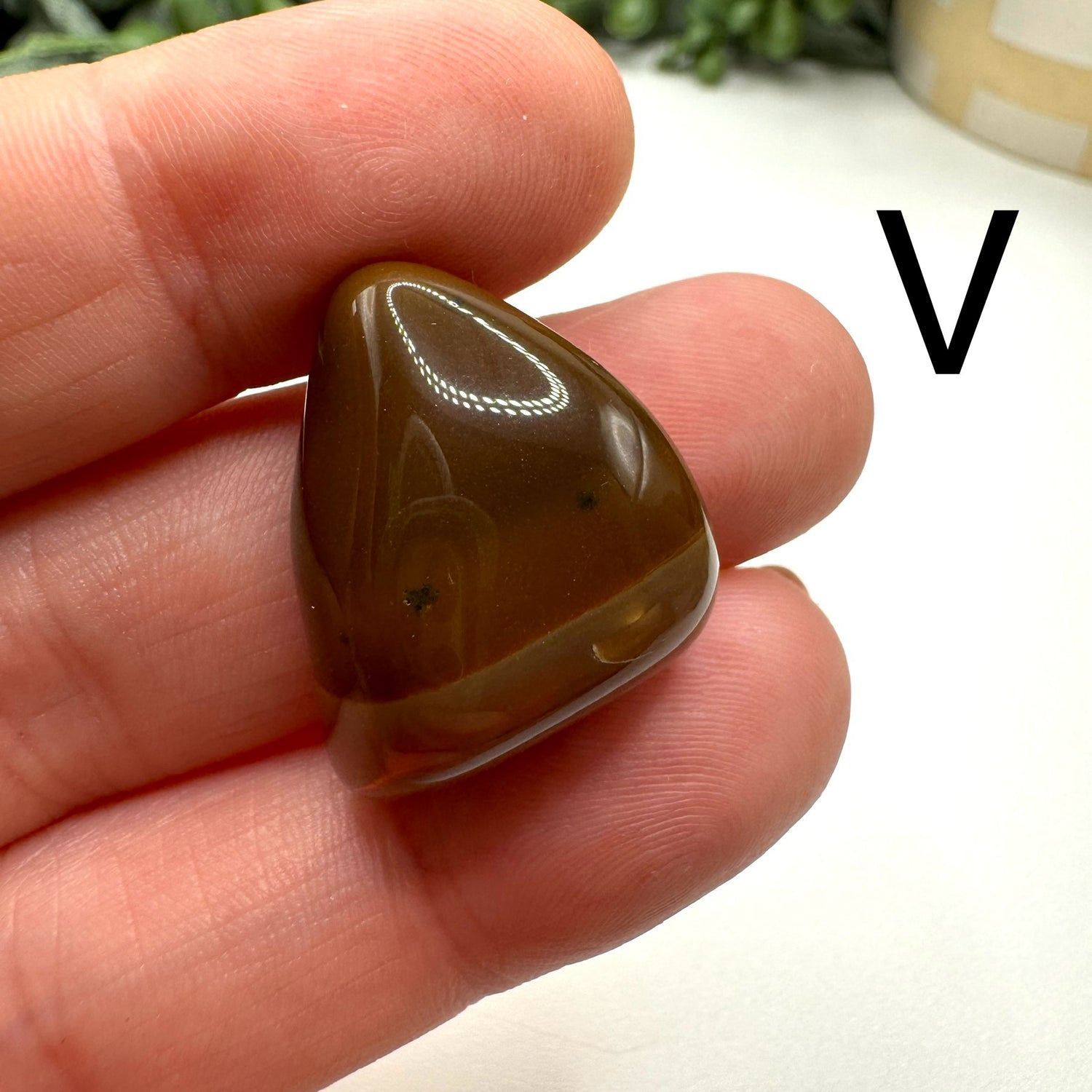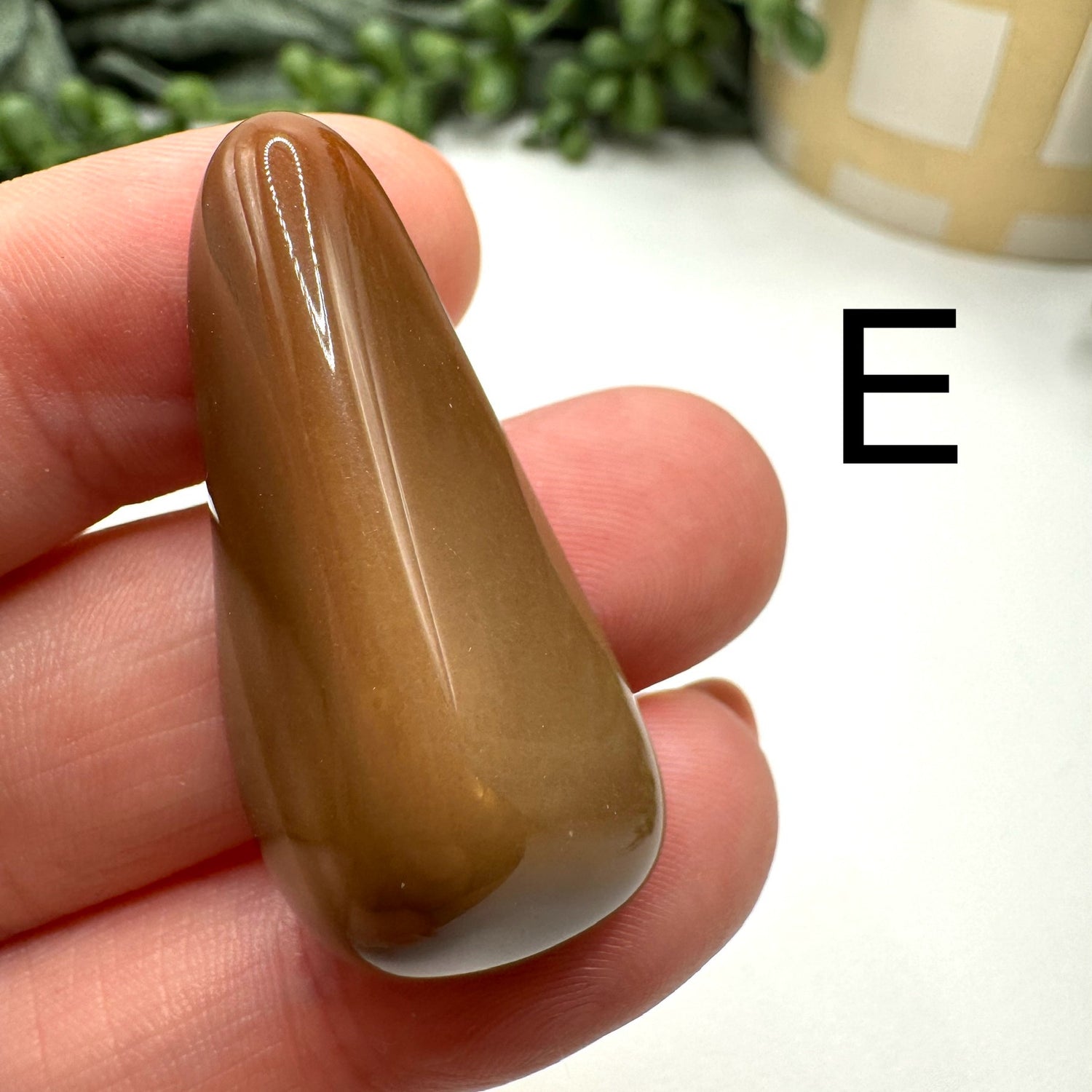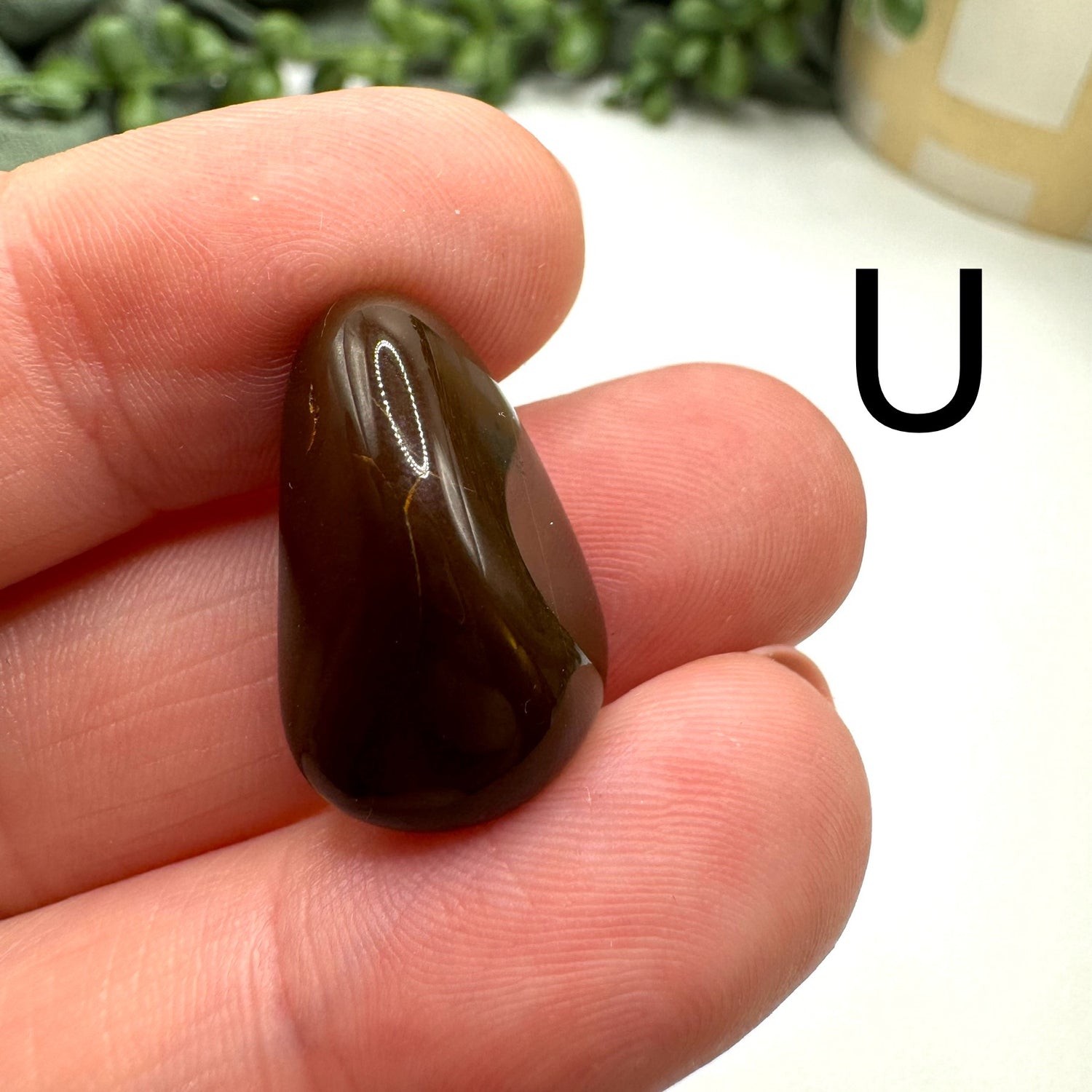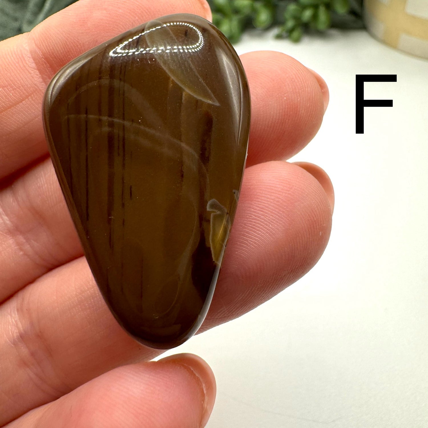 Choose your favorite chocolate opal tumble! These tumbles are gorgeous shades of chocolatey brown. They range from .5-2 inches in length.