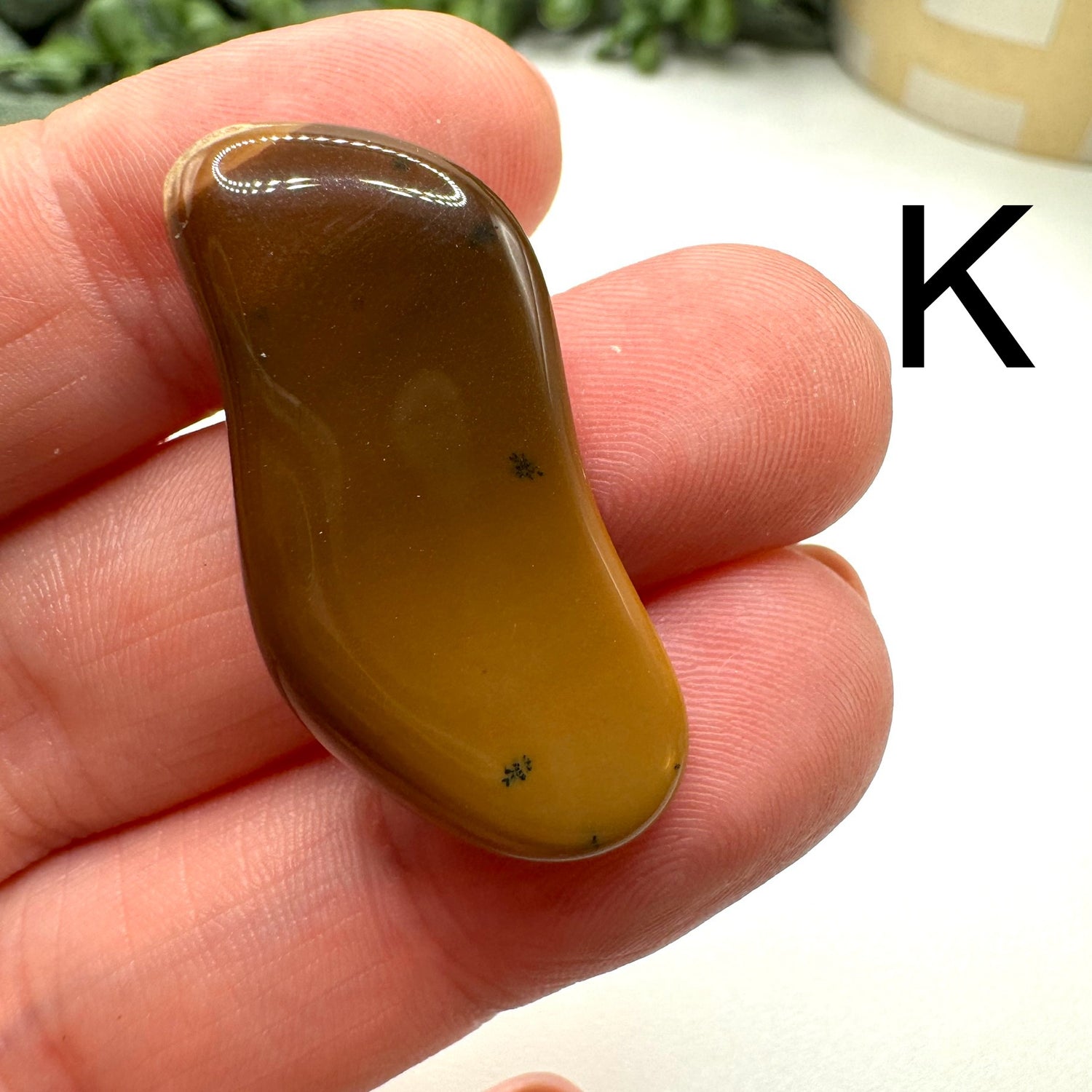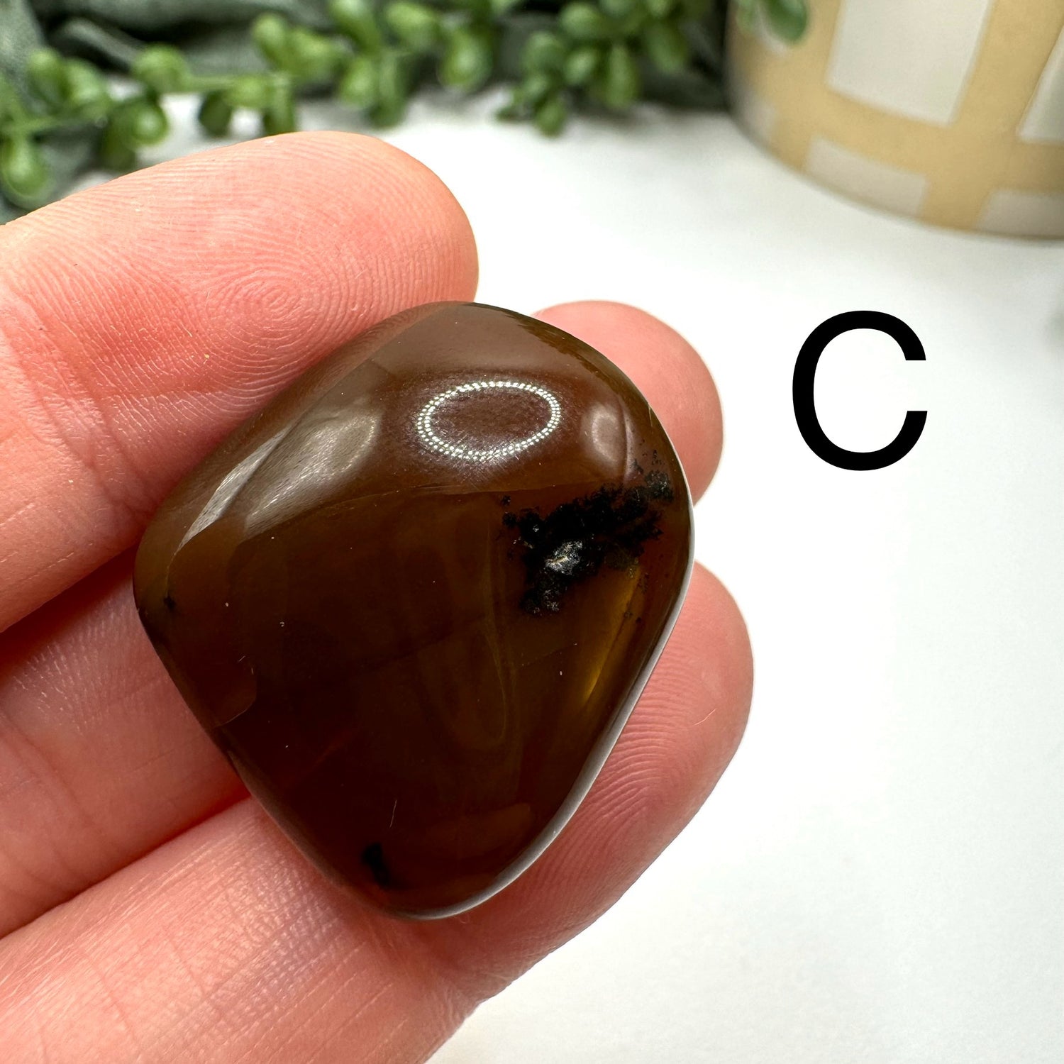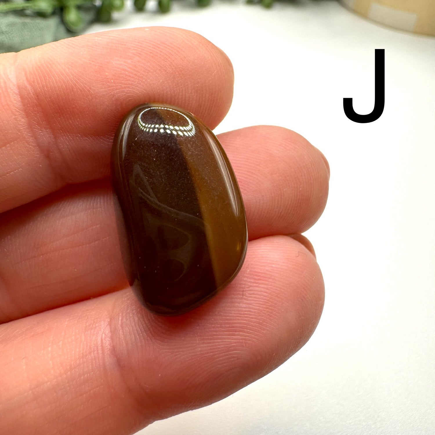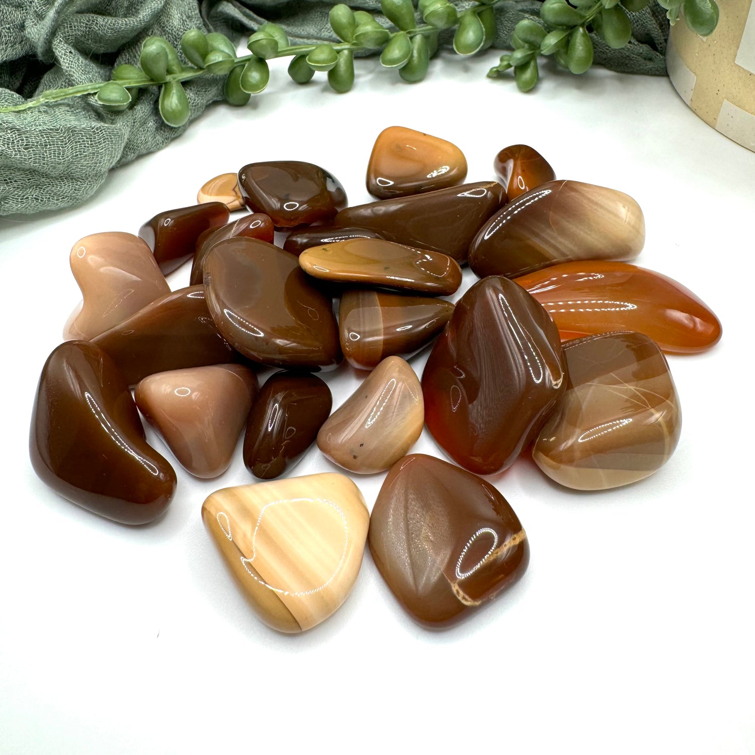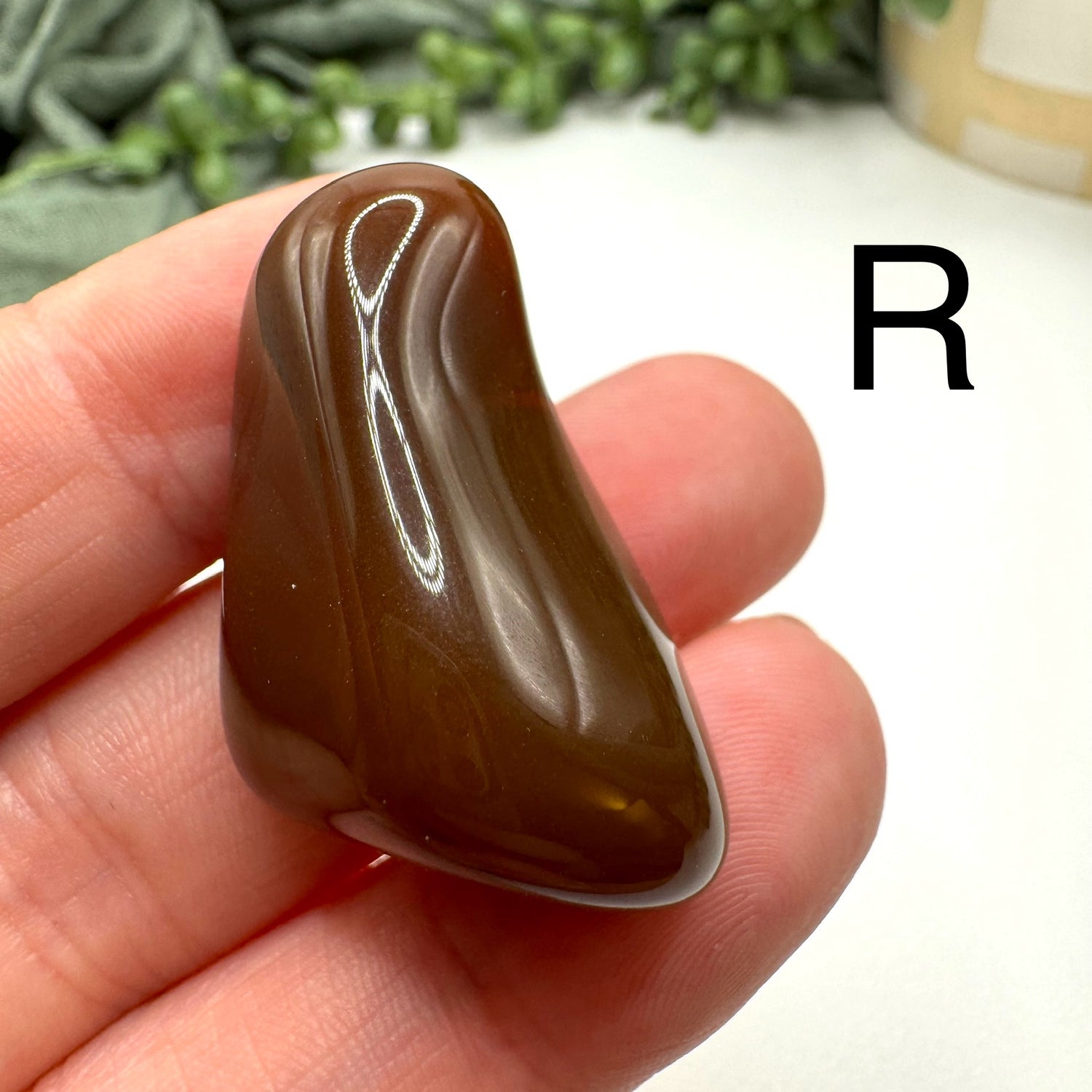 Choose your favorite chocolate opal tumble! These tumbles are gorgeous shades of chocolatey brown. They range from .5-2 inches in length.