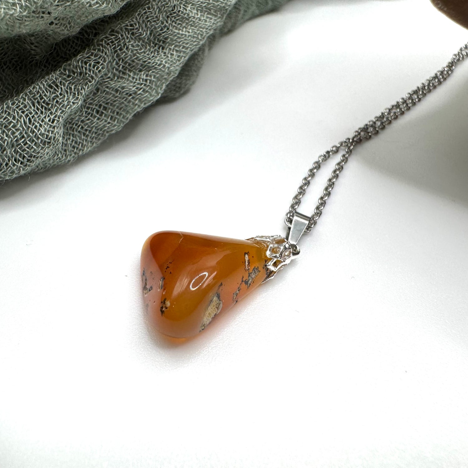 All of my necklaces are unique, one-of-a-kind, and handmade out of stones that I tumble and polish over a month long process. Check out my TikTok or YouTube @moonriserocks to see this stone’s journey from rough to perfectly polished!