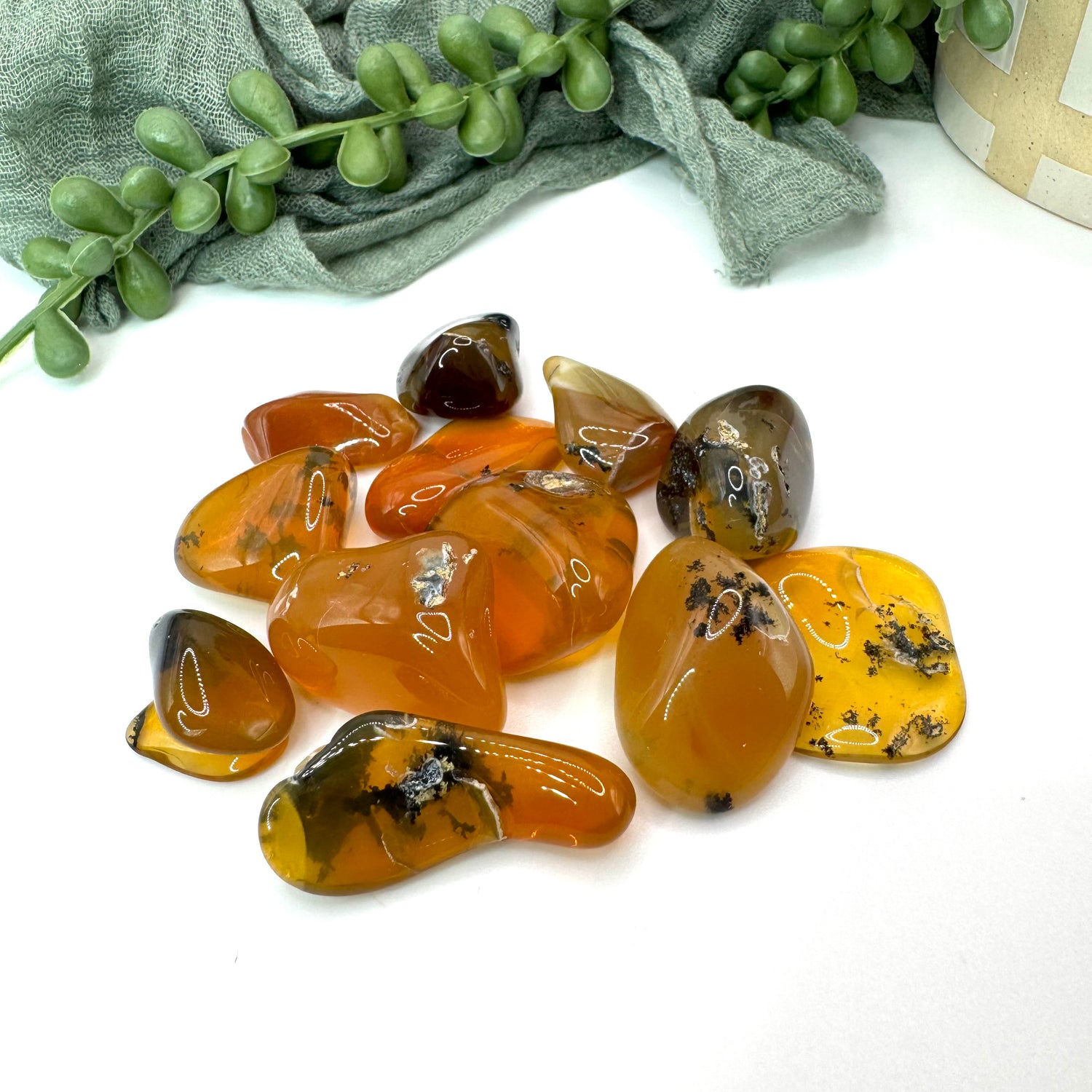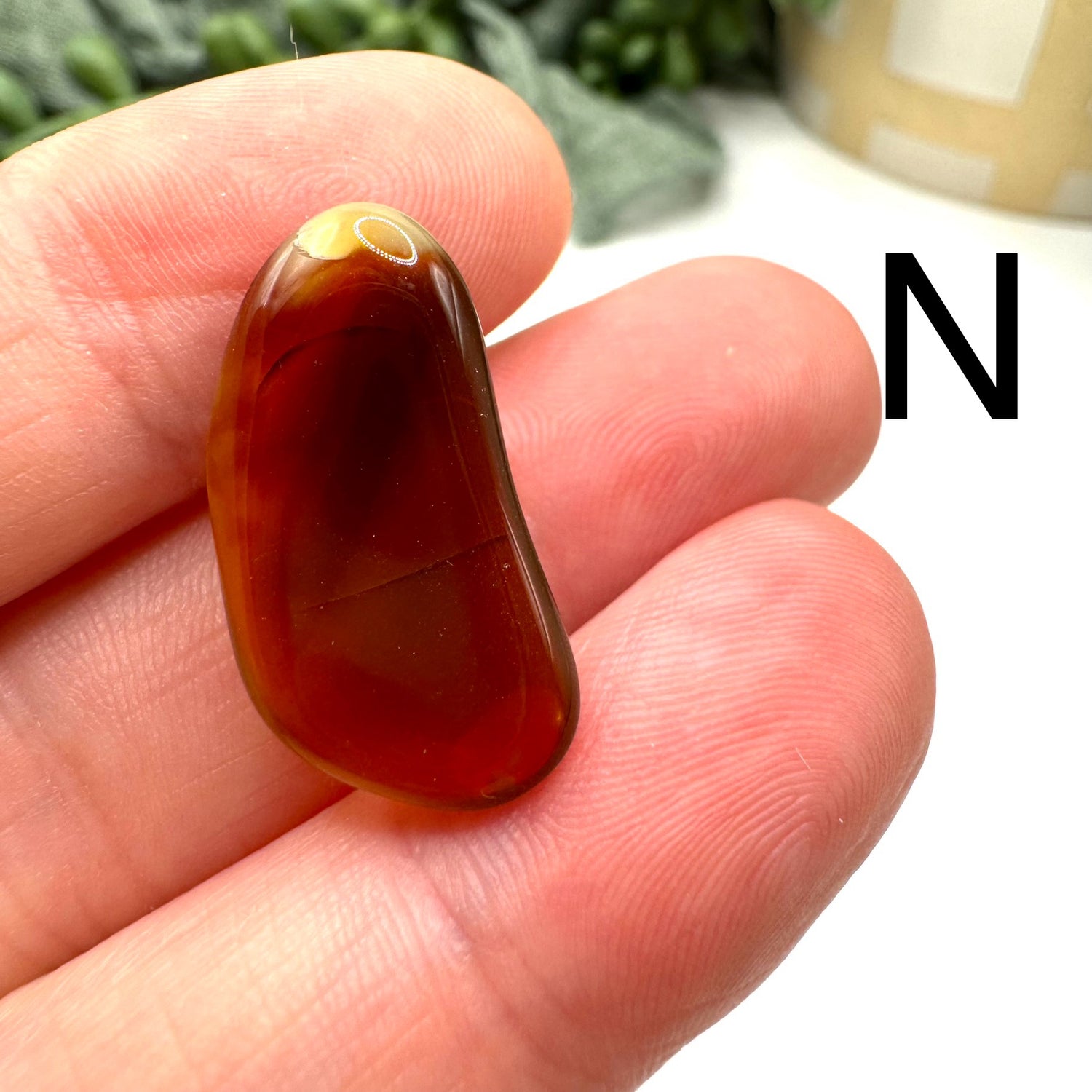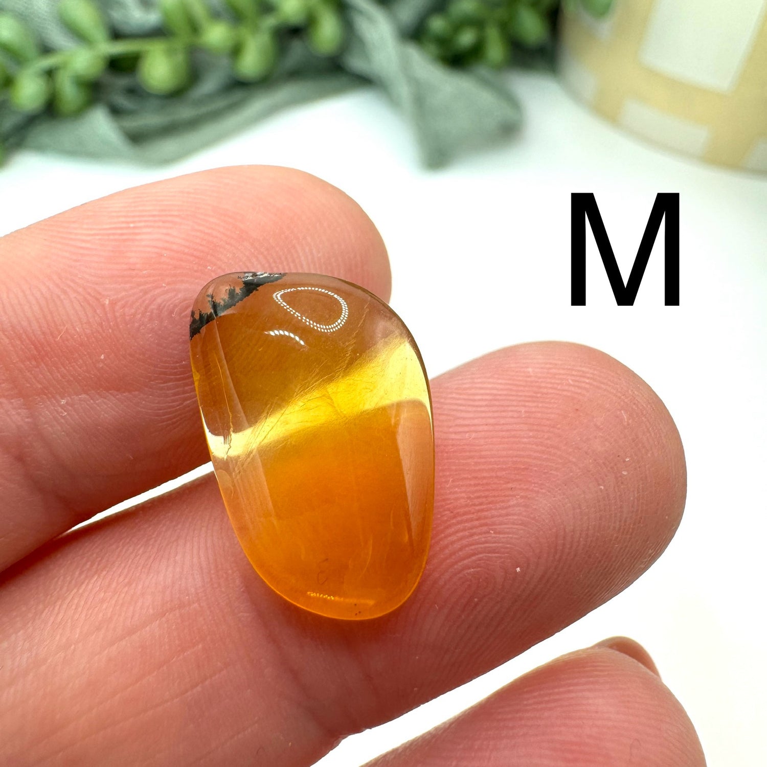 Choose your favorite fire opal tumble! These tumbles are gorgeous shades of yellow, orange, and red. Most of them are fairly small, ranging from .5-1 inch in length.