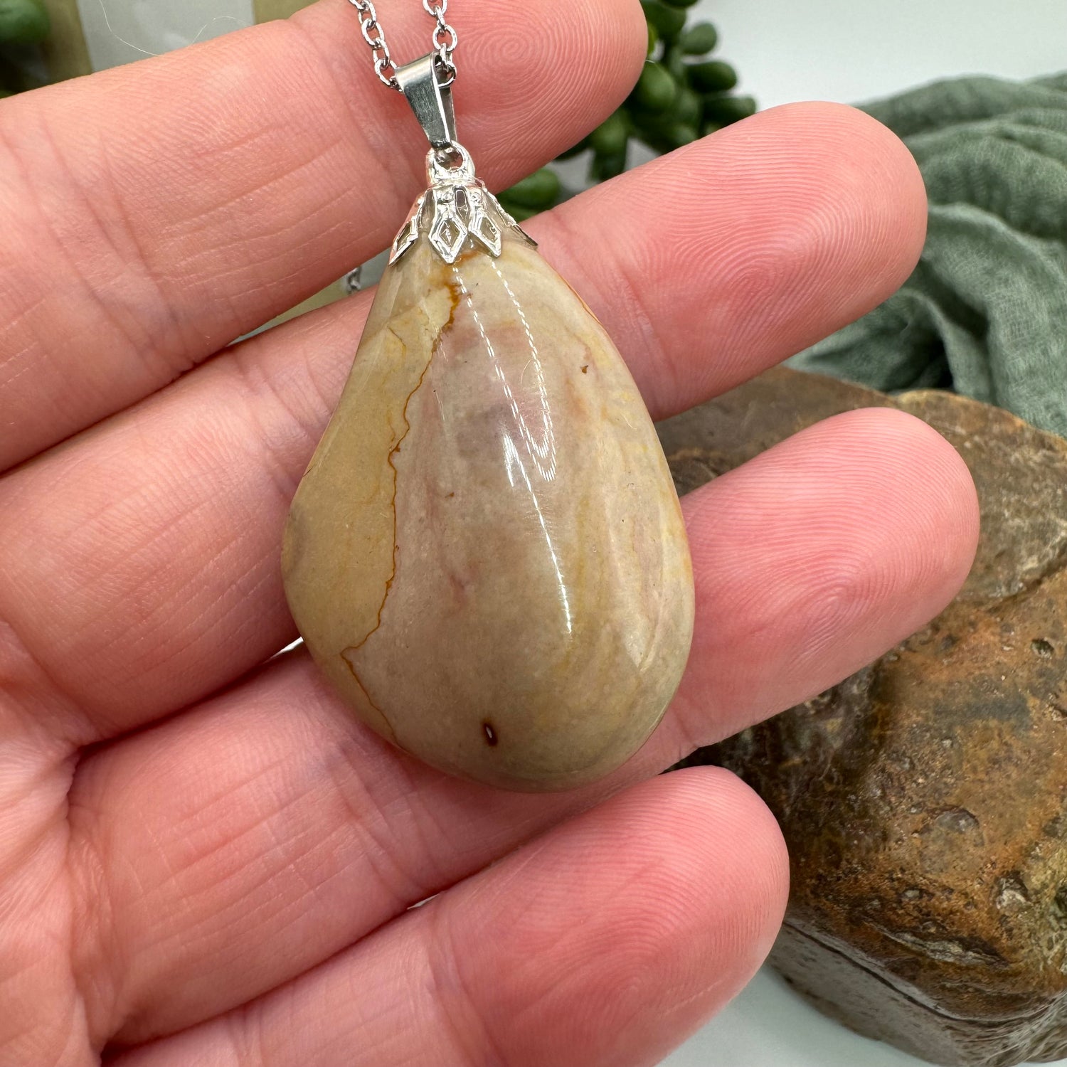 Carry a piece of the earth with you with this jasper necklace. The tumbled pendant comes on a stainless steel chain with a lobster clasp. The length can be adjusted from 18 to 20 inches. Stainless steel is hypoallergenic, highly durable, and it won't tarnish, making it a wonderful choice for everyday wear.