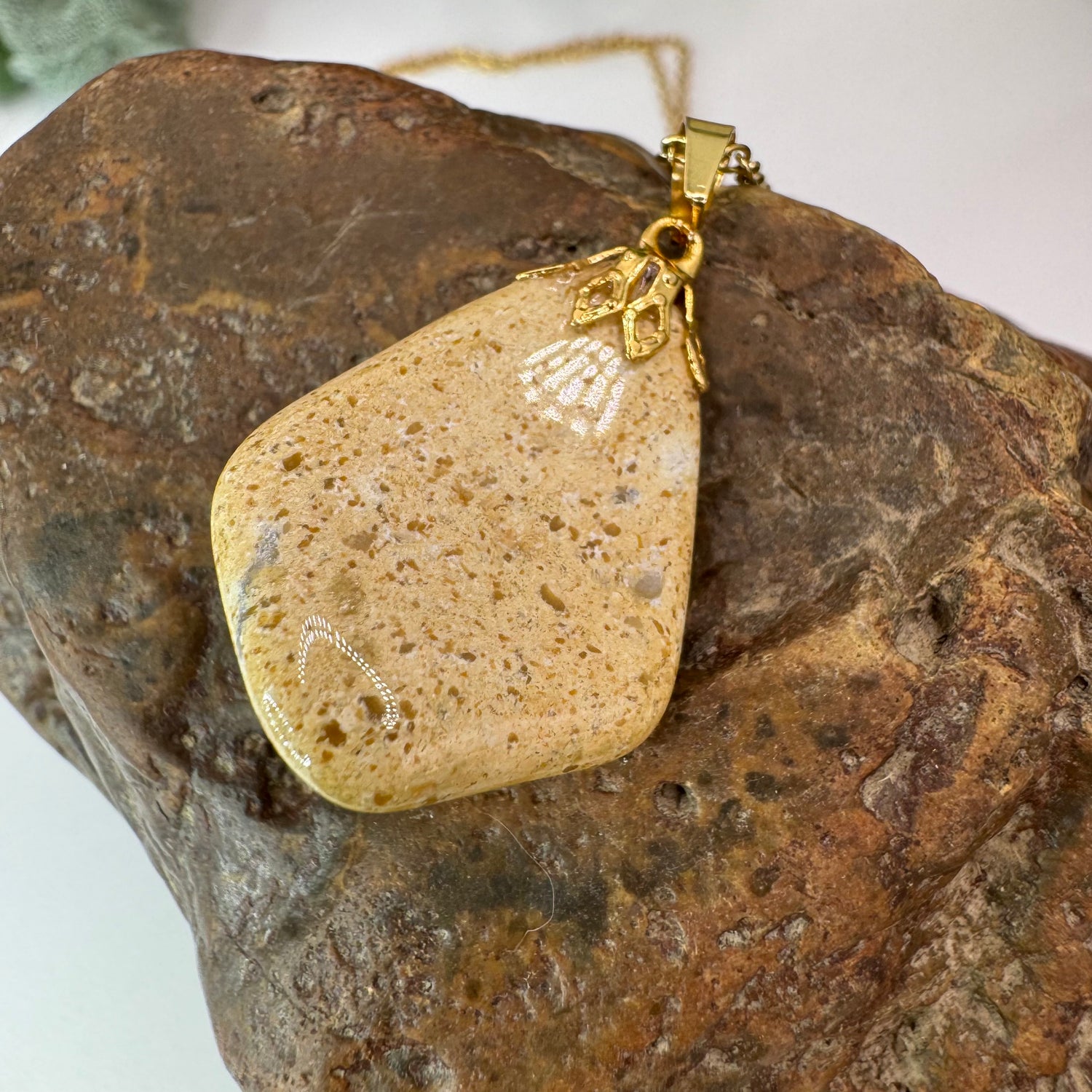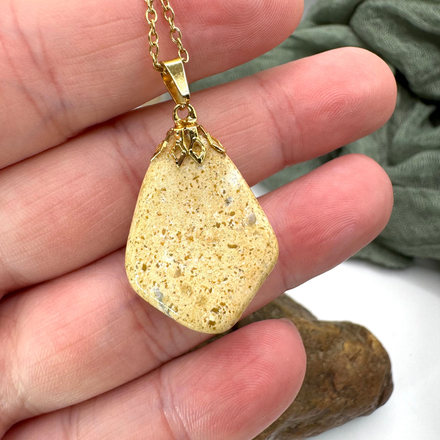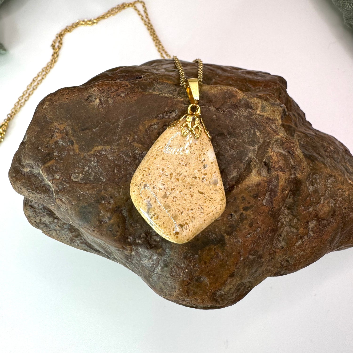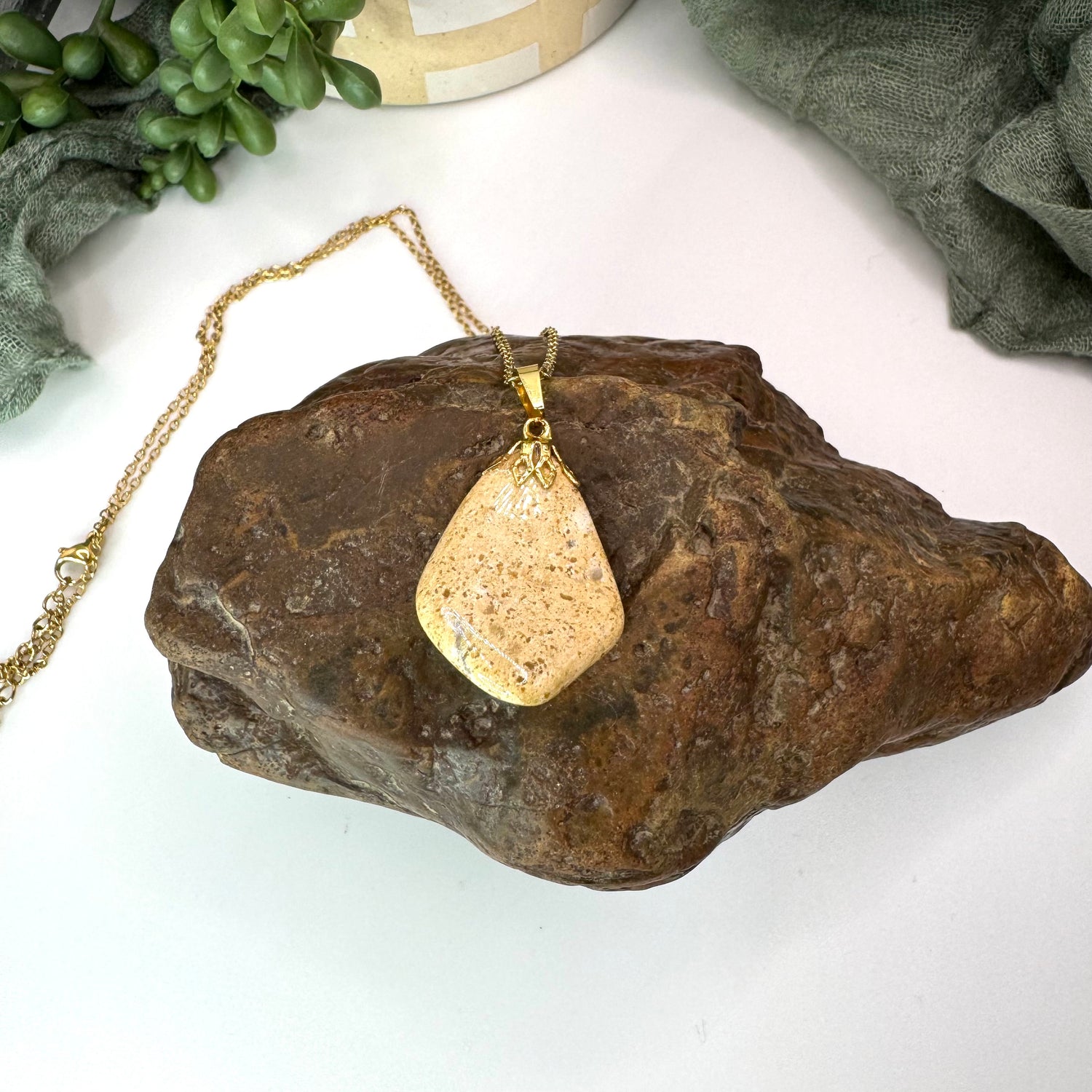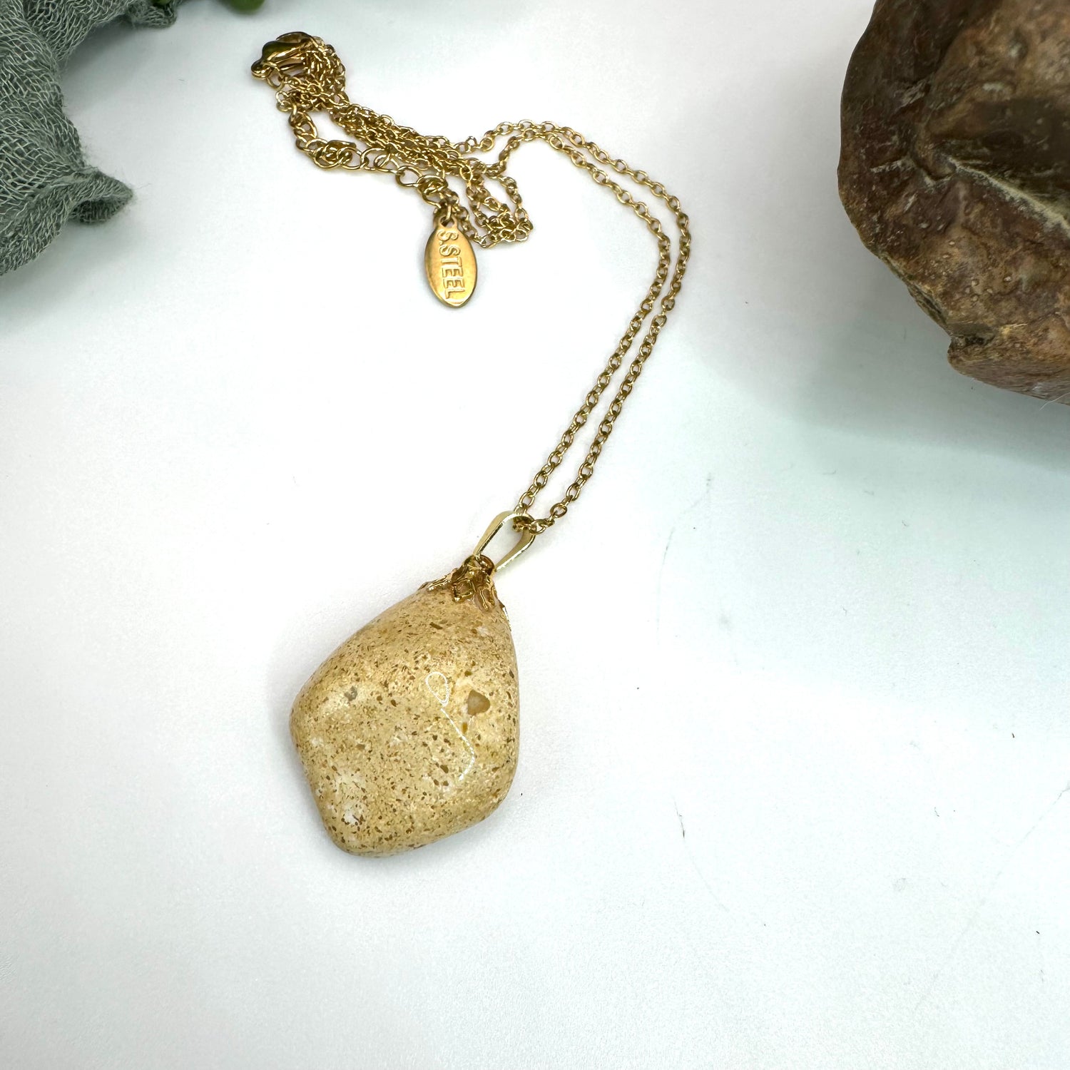 Carry a piece of the earth with you with this jasper necklace. The tumbled pendant comes on a gold-finished stainless steel chain with a lobster clasp. The length can be adjusted from 18 to 20 inches. Stainless steel is hypoallergenic, highly durable, and it won't tarnish, making it a wonderful choice for everyday wear.