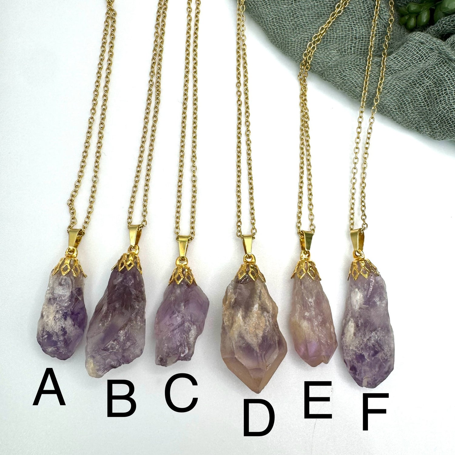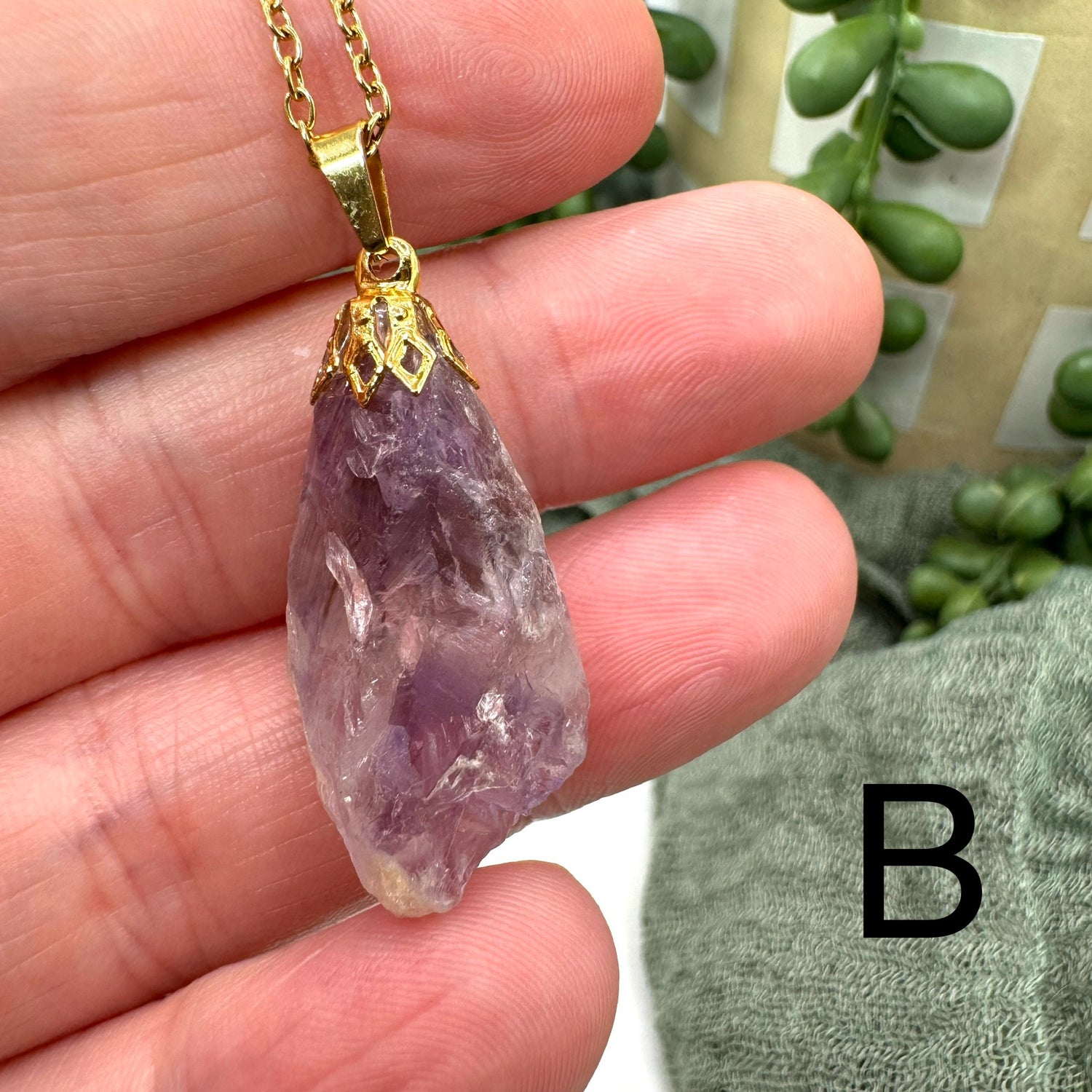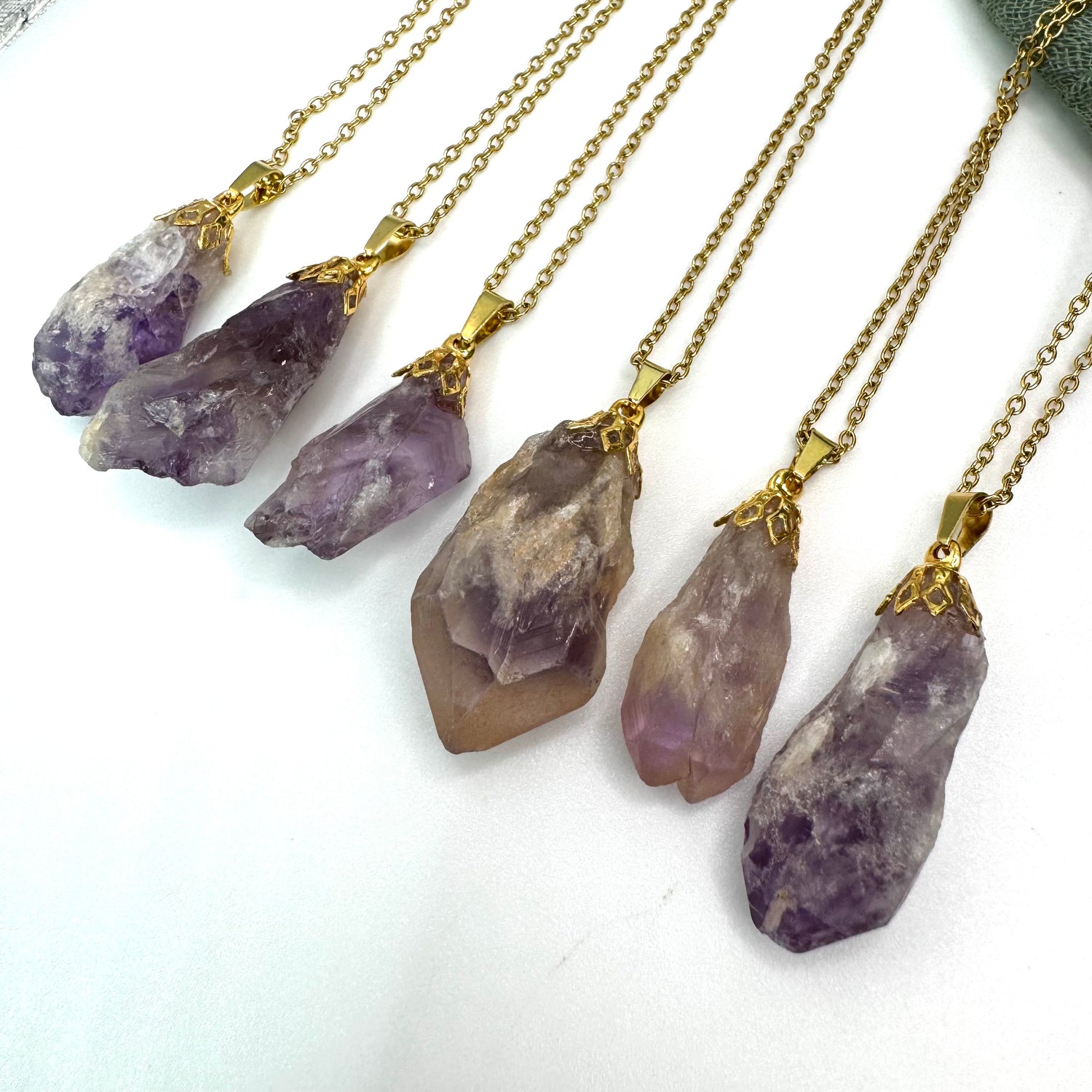 Carry a piece of the earth with you with a raw, untumbled amethyst necklace. The gorgeous purple amethyst point comes on a gold-finished stainless steel chain with a lobster clasp, which can be adjusted to 18 or 20 inches. Stainless steel is hypoallergenic, highly durable, and it won't tarnish, making it a wonderful choice for everyday wear.