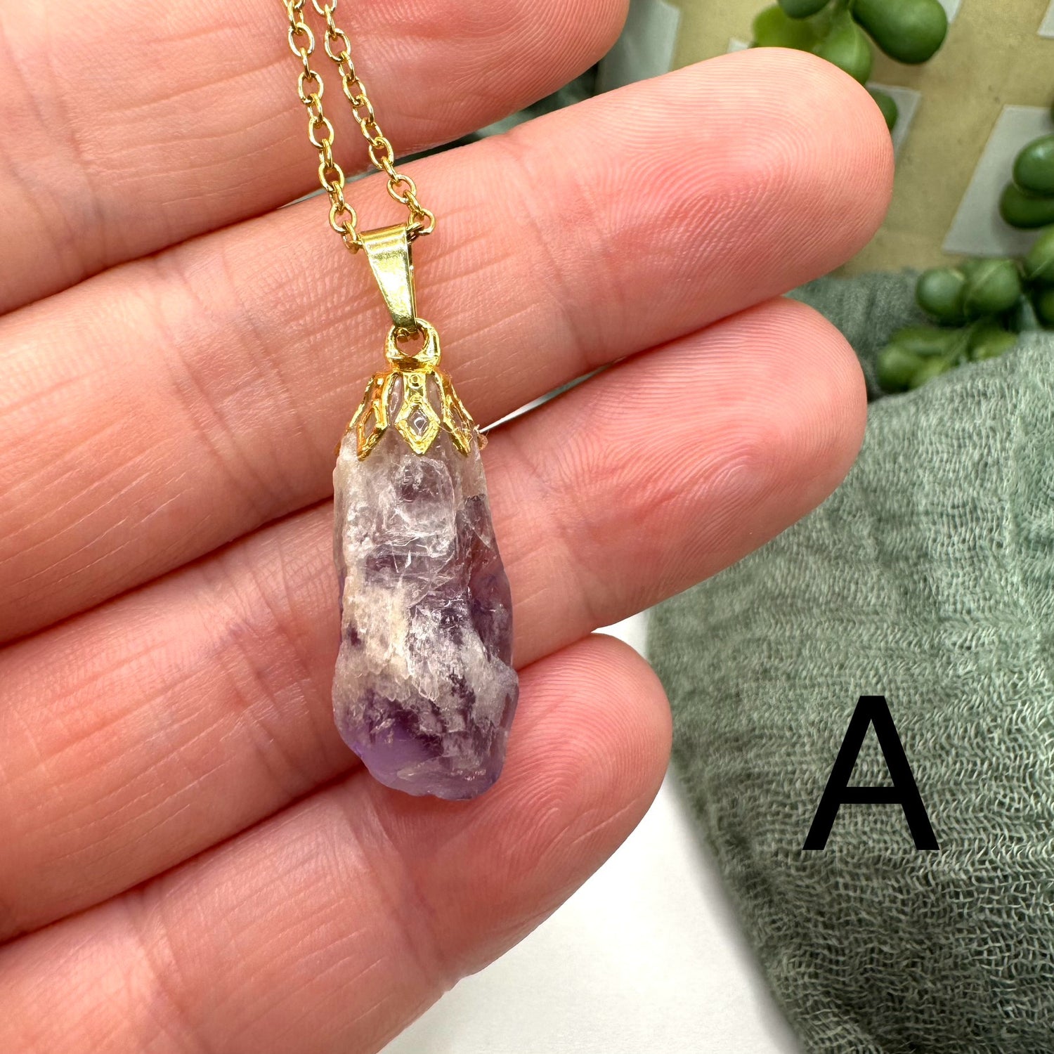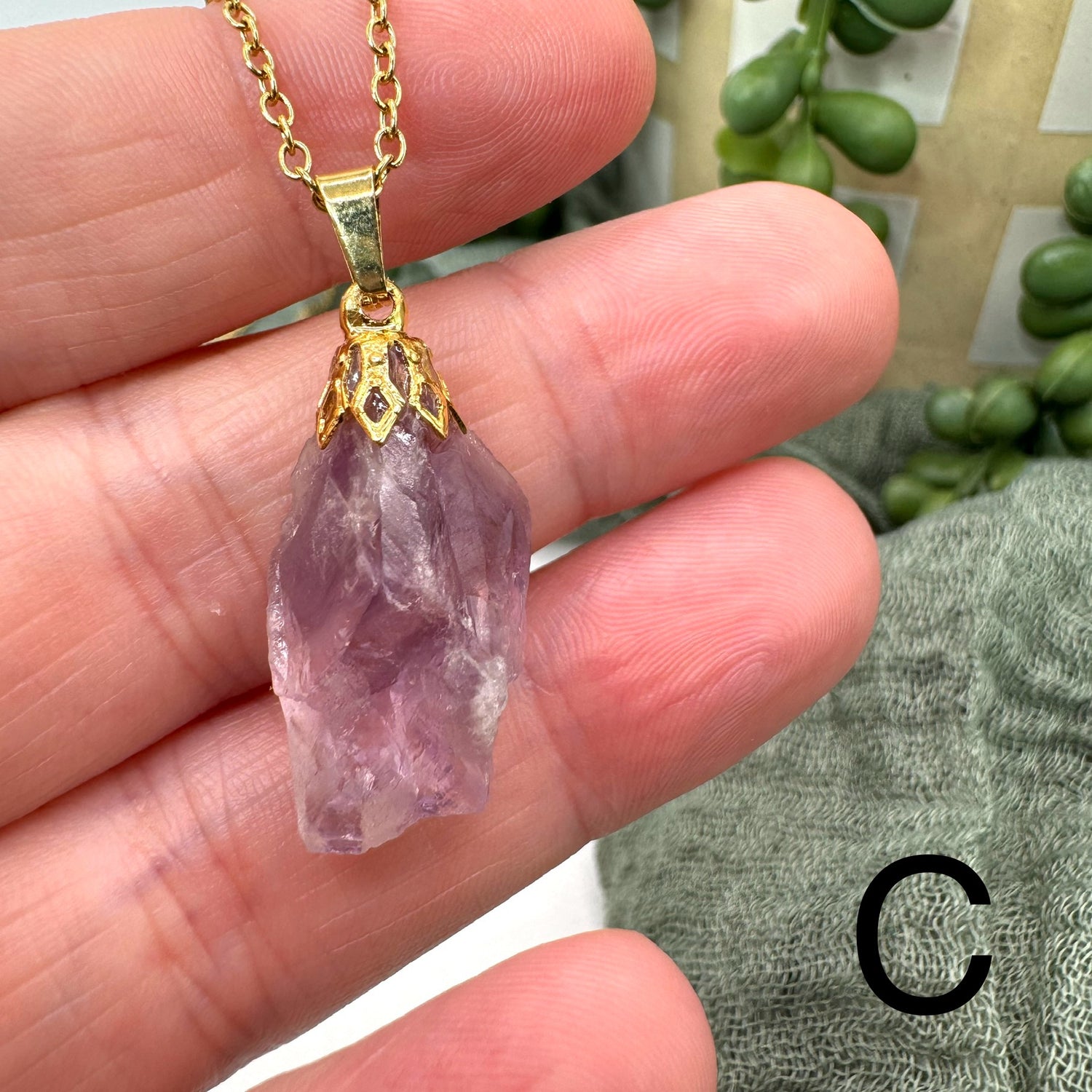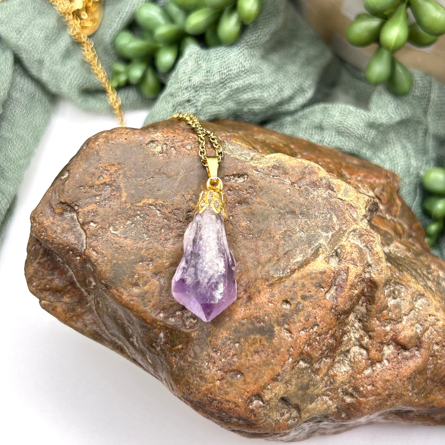 Carry a piece of the earth with you with a raw, untumbled amethyst necklace. The gorgeous purple amethyst point comes on a gold-finished stainless steel chain with a lobster clasp, which can be adjusted to 18 or 20 inches. Stainless steel is hypoallergenic, highly durable, and it won't tarnish, making it a wonderful choice for everyday wear.