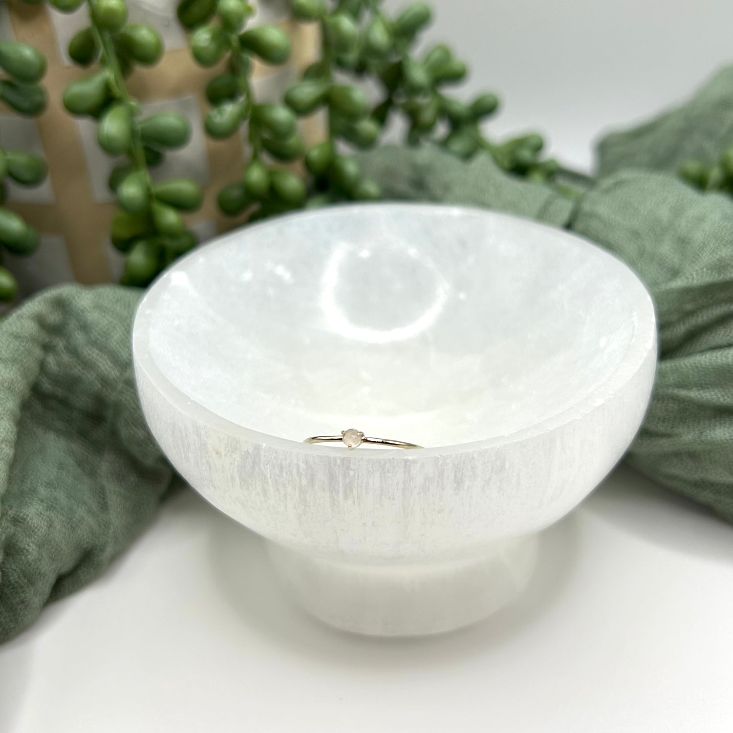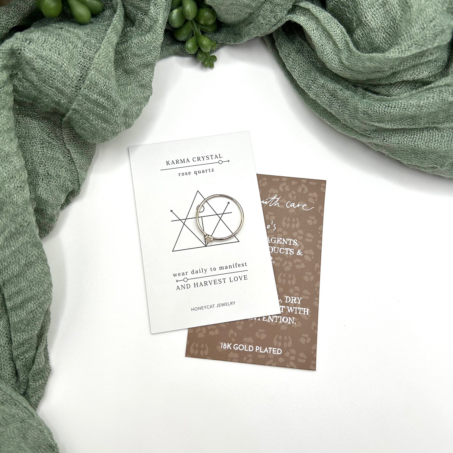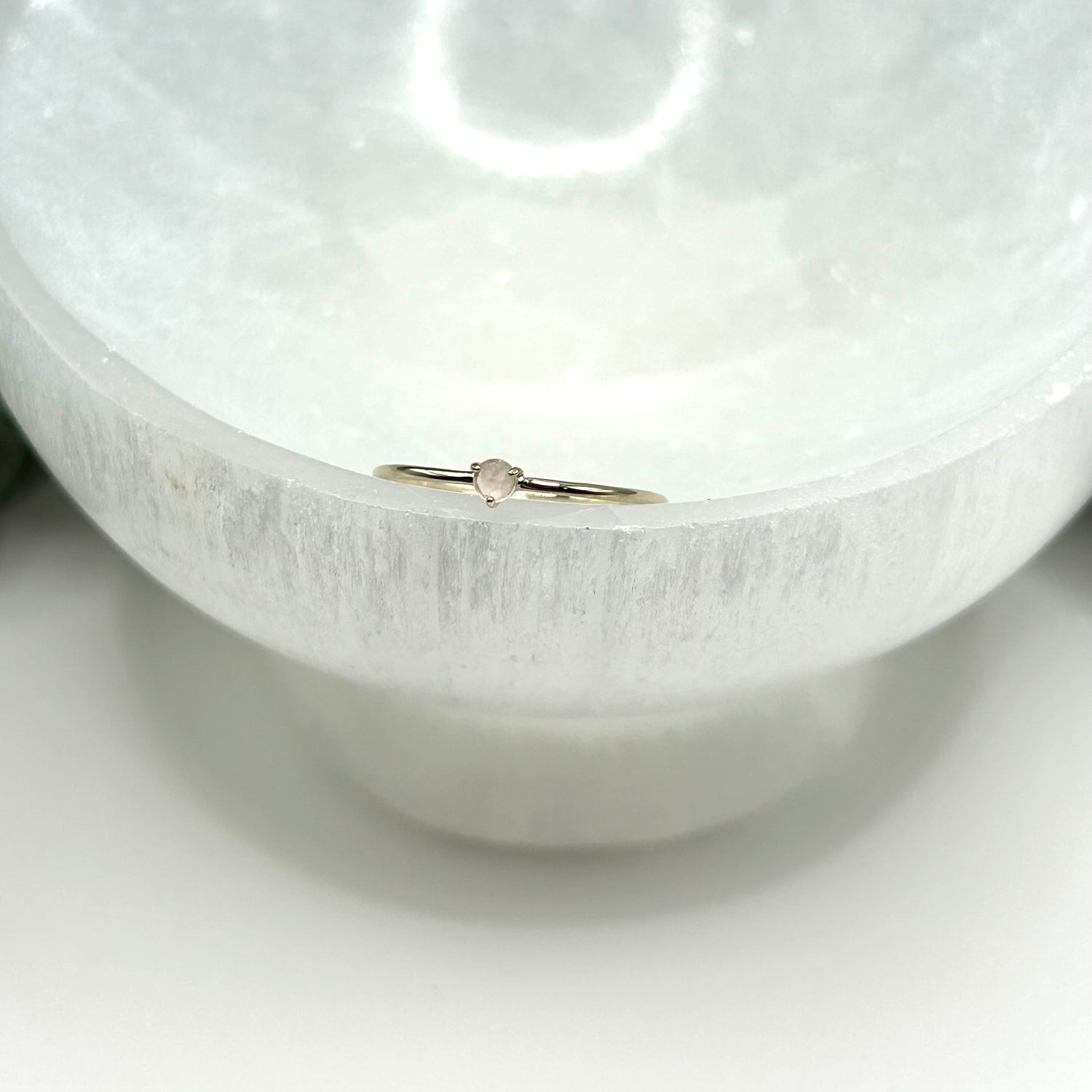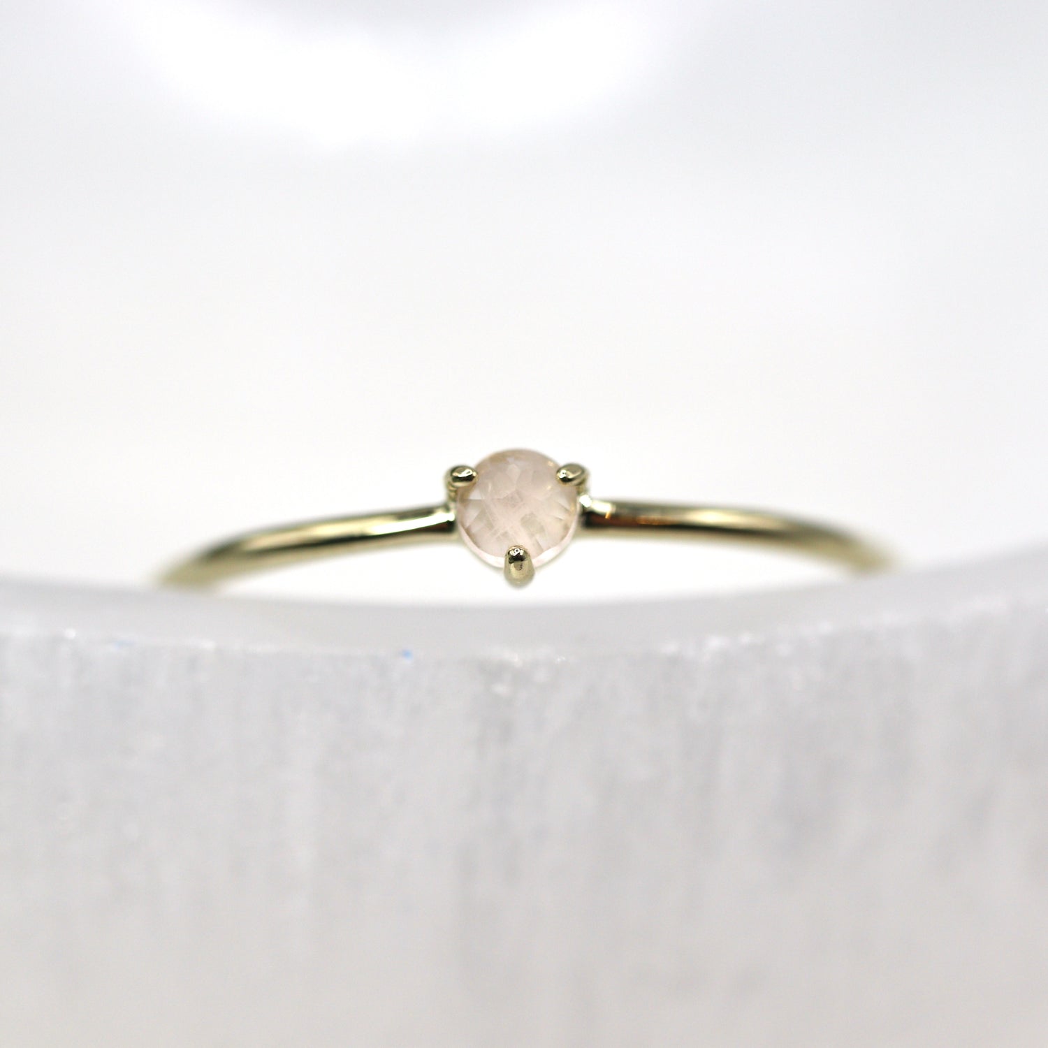 An ultra petite, bezeled rose quartz crystal delicately set upon a thin band. Rose quartz is a beautiful gemstone with a pale pink hue. It’s known as the crystal of unconditional love and is said to boost self-love and encourage compassion and care. The Rose Quartz Solitaire Ring is plated with sterling silver and finished with a protective coating, making for an amazing, high quality, seamless jewelry piece with longevity.