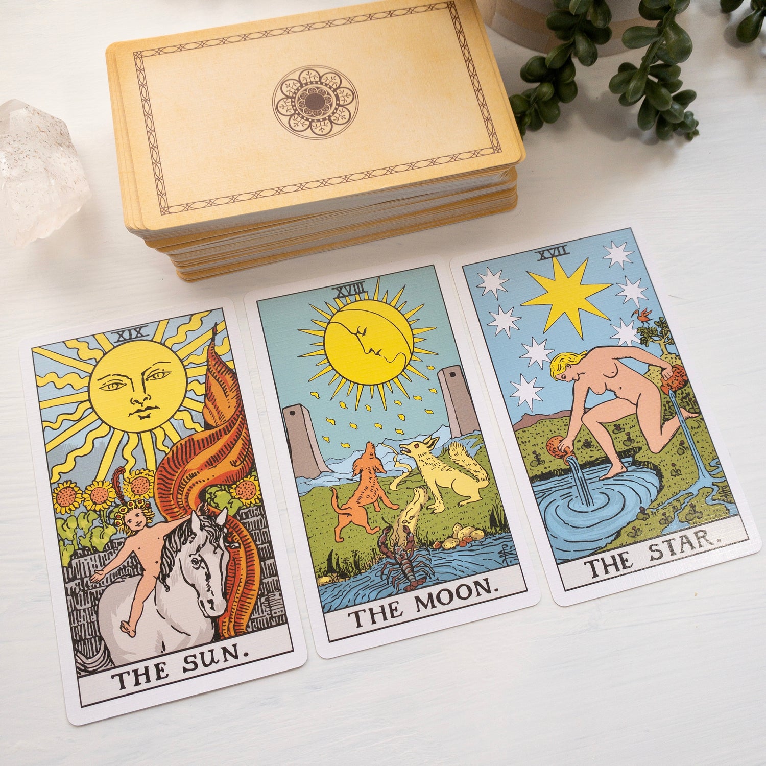 The Original Tarot Deck is a digitally remastered version of the classic Rider-Waite-Smith deck, which was designed in 1909 by Pamela Colman Smith under the direction of Arthur Edward Waite. It is one of the most widely used tarot decks and highly recommended for beginners due to how easy the cards are to connect with and interpret. It is an essential deck for any collector! Each deck comes with a detailed guidebook that contains full color pictures, a sample spread, and an interpretation of each cards meaning and symbolism, making it easy to jump right into the mystical world of tarot.