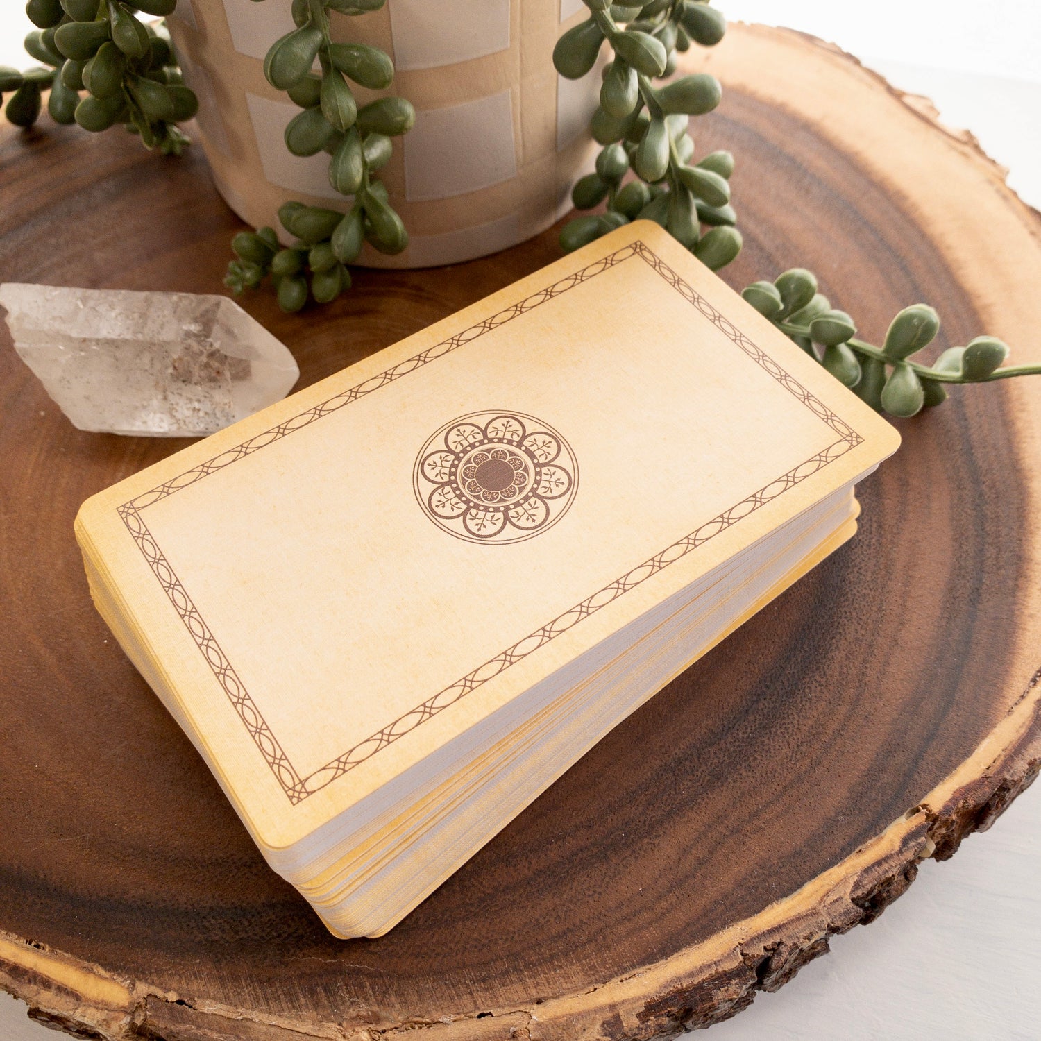- Standard tarot card size, 2 3/4 x 4 3/4 inches